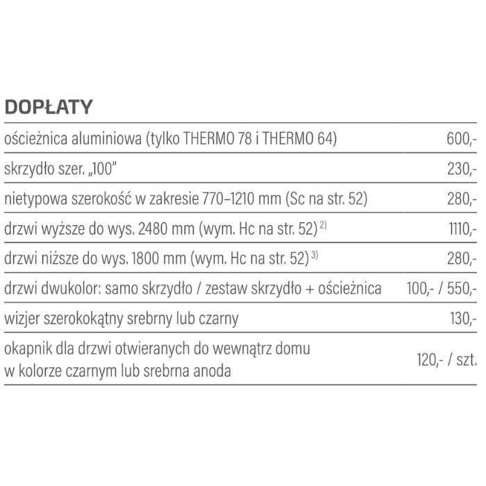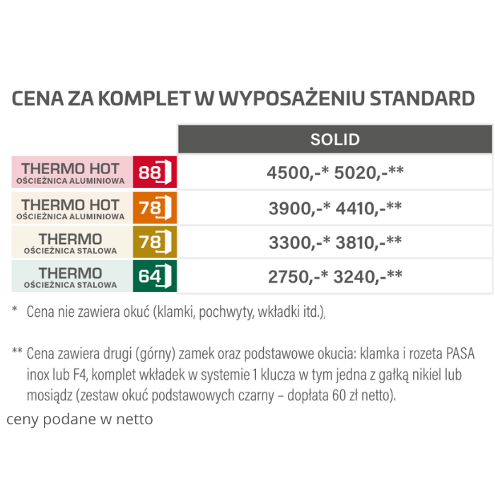 Drzwi dostępne w standardzie: THERMO 78 HOT za dopłatą od 1250 zł netto