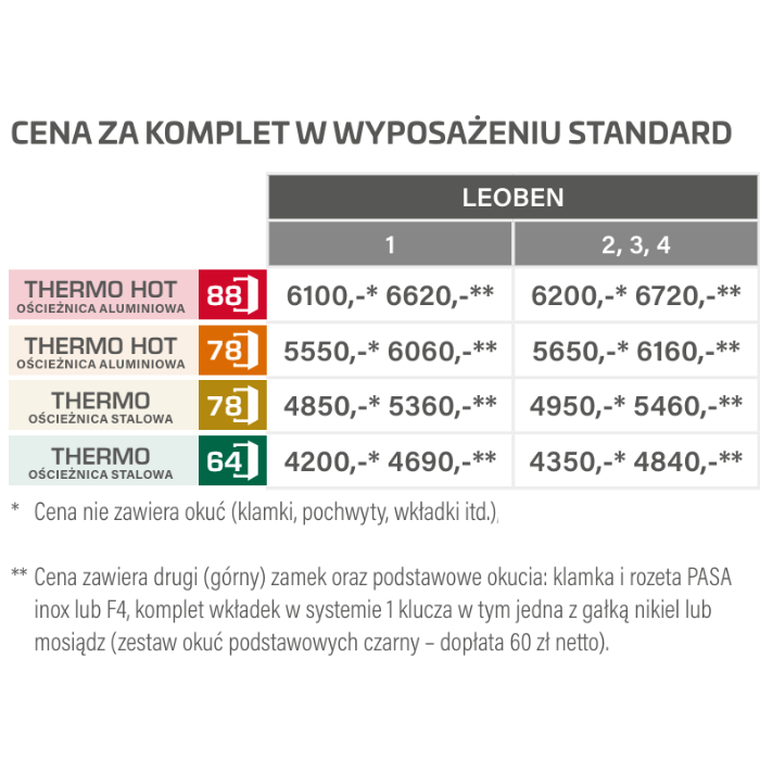 Drzwi dostępne w standardzie: THERMO 78 HOT za dopłatą od 1350 zł netto