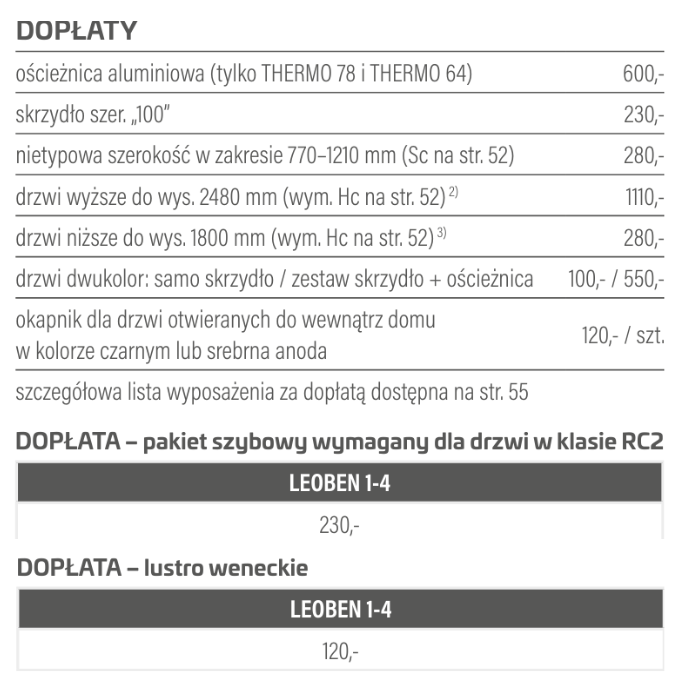 Drzwi dostępne w standardzie: THERMO 78 za dopłatą od 650 zł netto