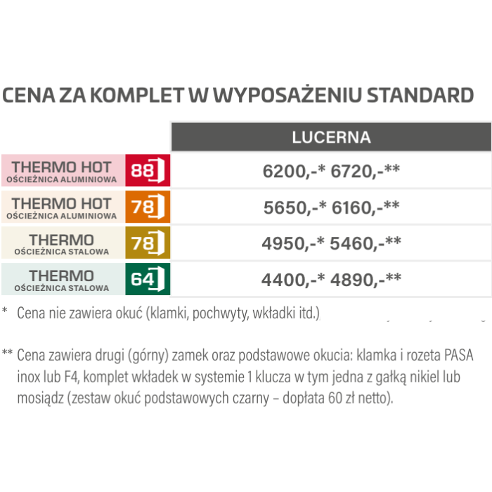 Drzwi dostępne w standardzie: THERMO 78 HOT za dopłatą od 1250 zł netto