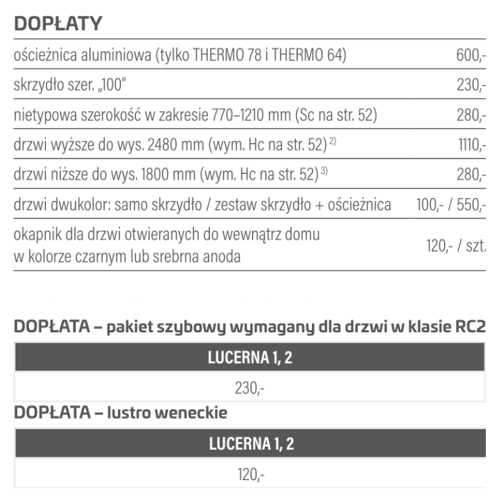 Drzwi dostępne w standardzie: THERMO 78 za dopłatą od 550 zł netto