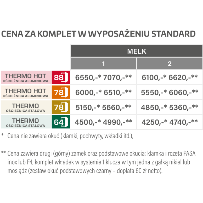Drzwi dostępne w standardzie: THERMO 88 HOT za dopłatą od 2050 zł netto