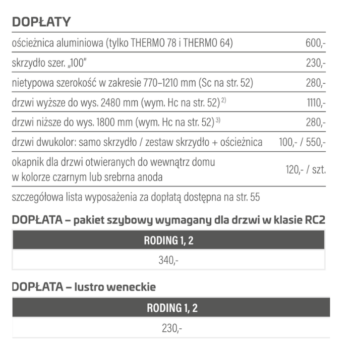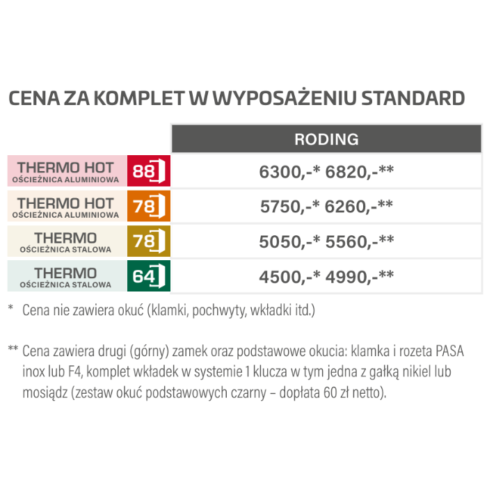 Drzwi dostępne w standardzie: THERMO 78 za dopłatą od 550 zł netto