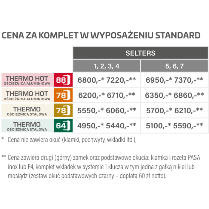 Drzwi dostępne w standardzie: THERMO 78 HOT za dopłatą od 1250 zł netto