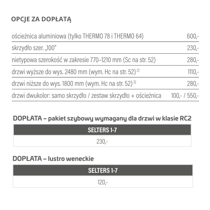 Drzwi dostępne w standardzie: THERMO 78 za dopłatą od 600 zł netto