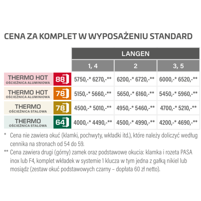 Drzwi dostępne w standardzie: THERMO 88 HOT za dopłatą od 1750 zł netto