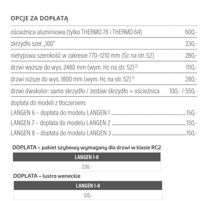 Drzwi dostępne w standardzie: THERMO 78 za dopłatą od 500 zł netto