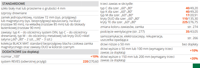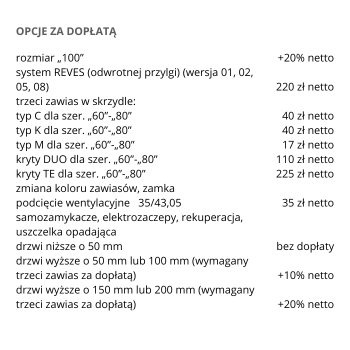 Możliwość wykonania za dopłatą w standardzie: bezprzylgowe, rewersyjne.