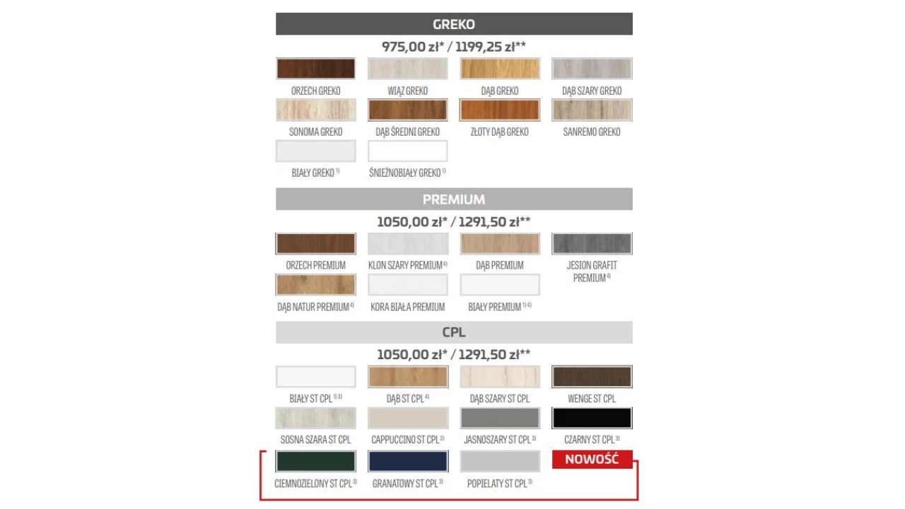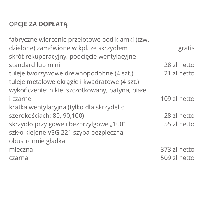Możliwość wykonania za dopłatą w standardzie: bezprzylgowe, rewersyjne.