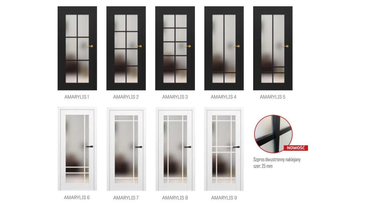 Drzwi Amarylis to nowa propozycja od Erkado. Doskonałe połączenie nowoczesnego wyglądu z funkcjonalnością i niską ceną. Dzięki dużej szklanej powierzchni nasze wnętrza nabiorą charakteru i przestrzeni a całość będzie wyglądała bardzo stylowo. Szeroki wybór oklein sprawi że z łatwością dobierzemy kolor drzwi do naszych pomieszczeń. Modele oraz kolorystyka dostępna w galerii zdjęć.