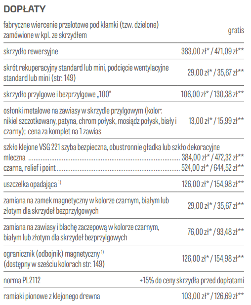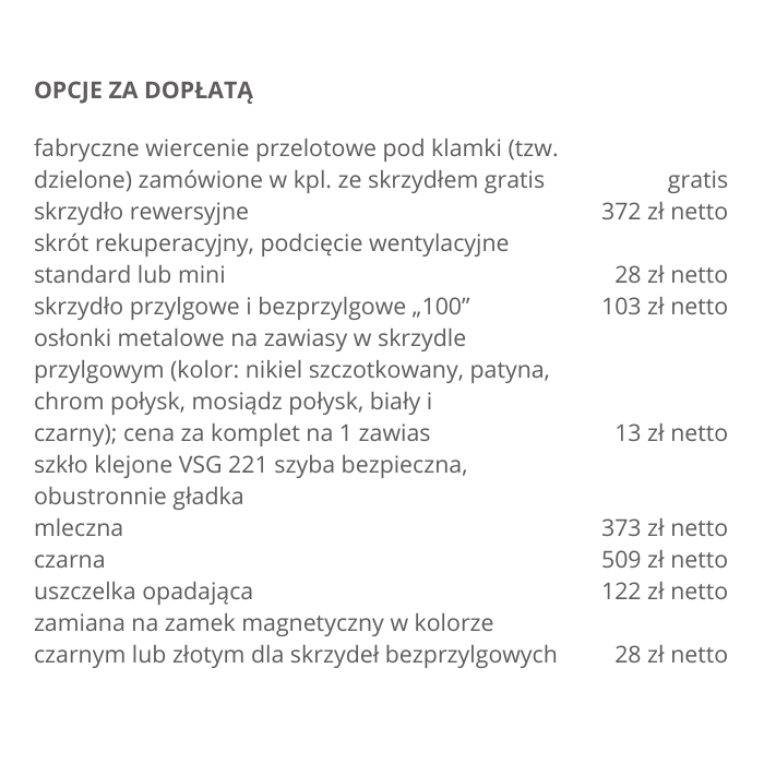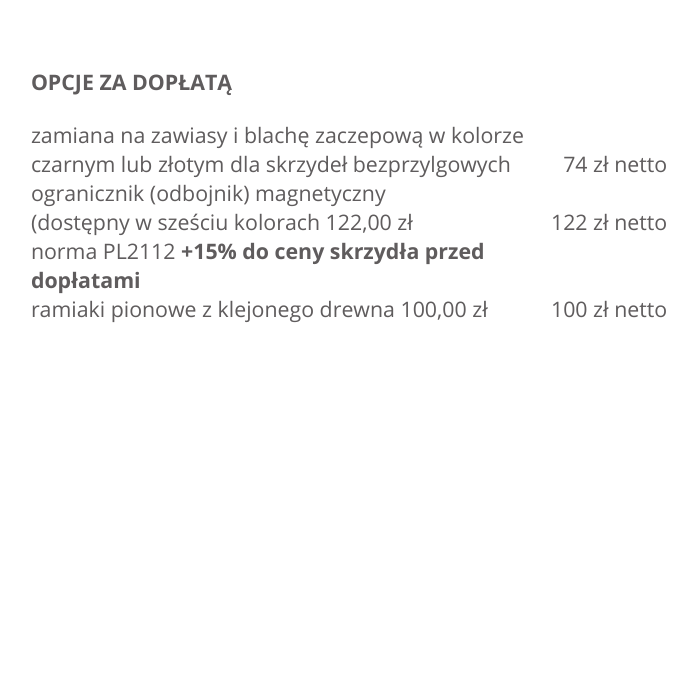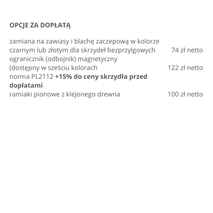 Możliwość wykonania za dopłatą w standardzie: bezprzylgowe, rewersyjne.