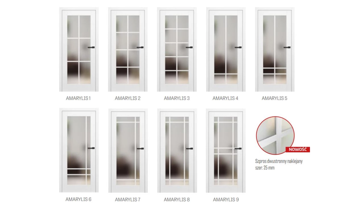 Drzwi Amarylis to nowa propozycja od Erkado. Doskonałe połączenie nowoczesnego wyglądu z funkcjonalnością i niską ceną. Dzięki dużej szklanej powierzchni nasze wnętrza nabiorą charakteru i przestrzeni a całość będzie wyglądała bardzo stylowo. Biały lakier UV zapewni nam wyższą odporność na ścieranie oraz wilgoć co przełoży się na dłuższe użytkowanie produktu. Modele dostępne w galerii zdjęć.
