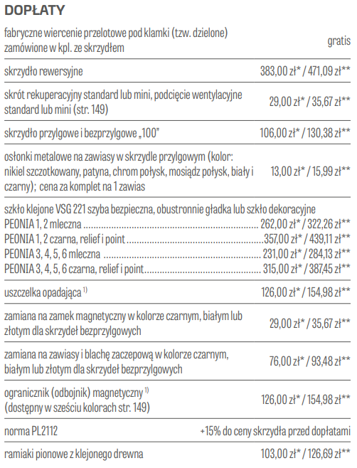 Możliwość wykonania za dopłatą w standardzie: bezprzylgowe, rewersyjne.