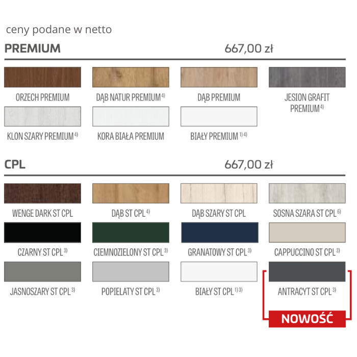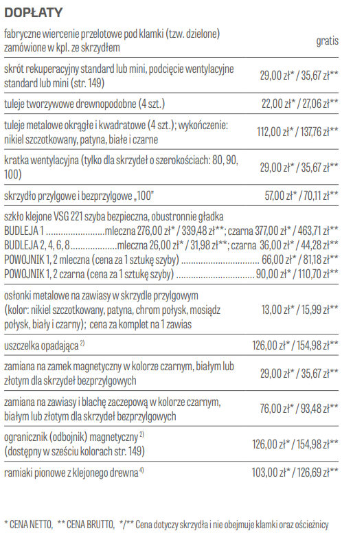 Możliwość wykonania za dopłatą w standardzie: bezprzylgowe, rewersyjne.