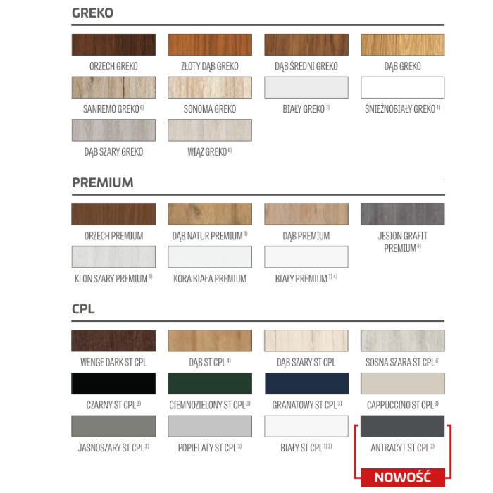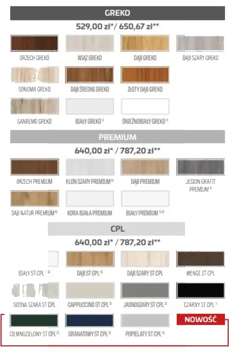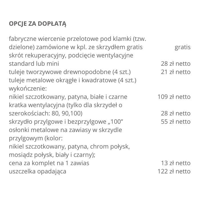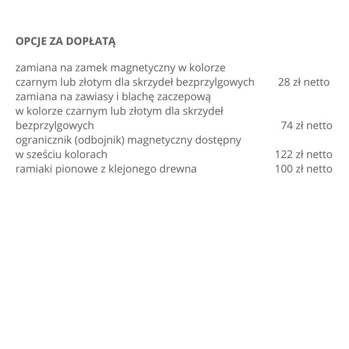 Możliwość wykonania za dopłatą w standardzie: bezprzylgowe, rewersyjne.