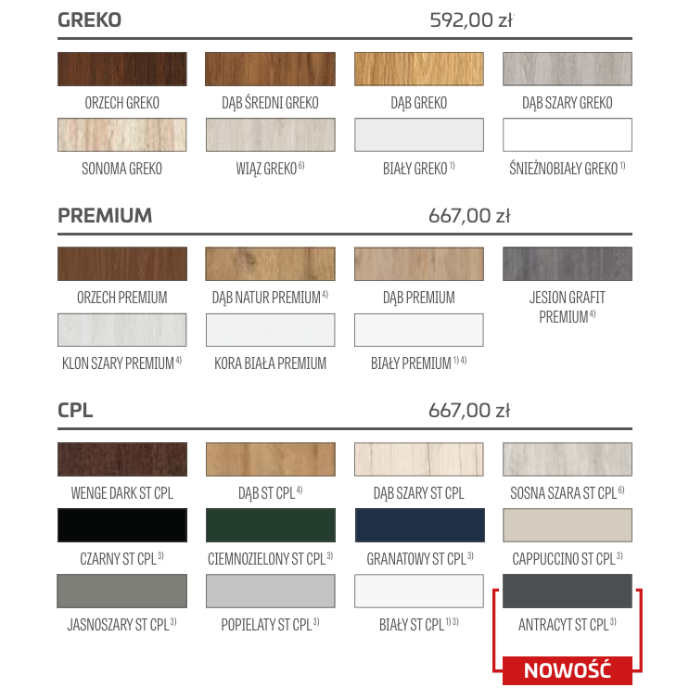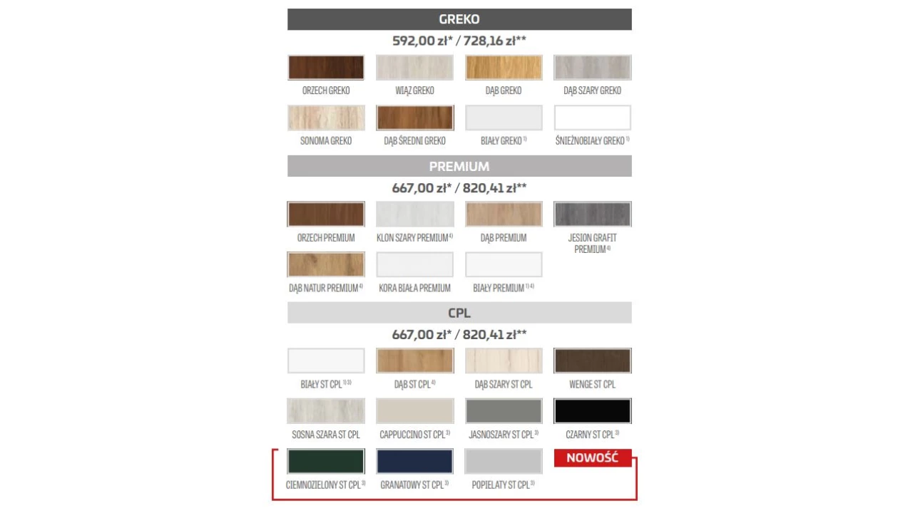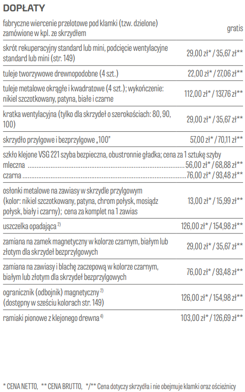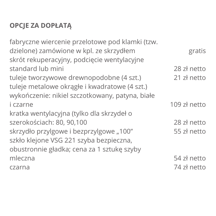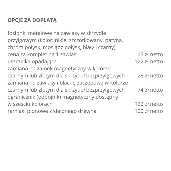 Możliwość wykonania za dopłatą w standardzie: bezprzylgowe, rewersyjne.