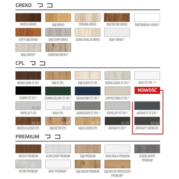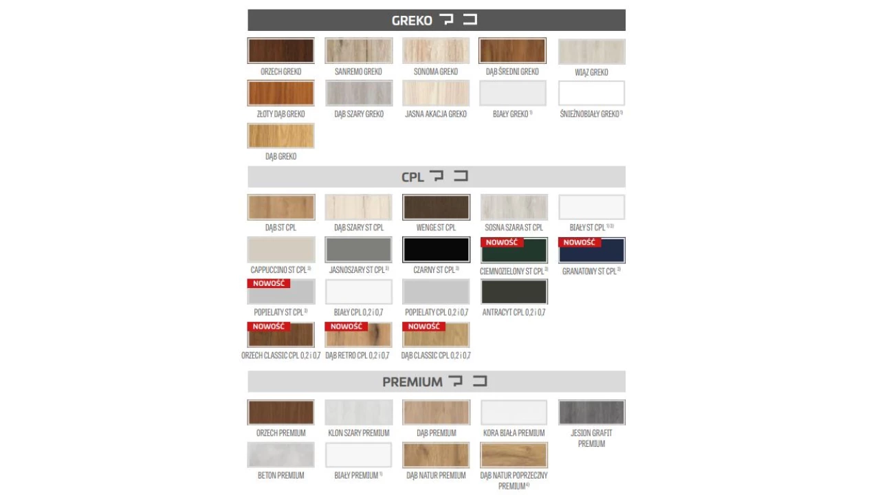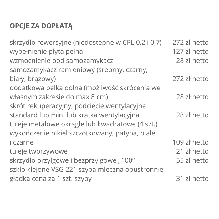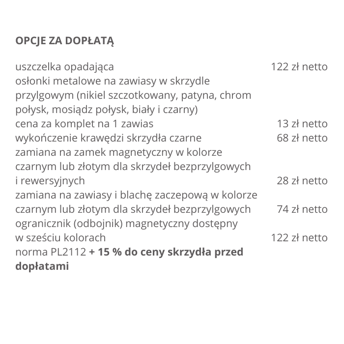 Możliwość wykonania za dopłatą w standardzie: bezprzylgowe, rewersyjne.