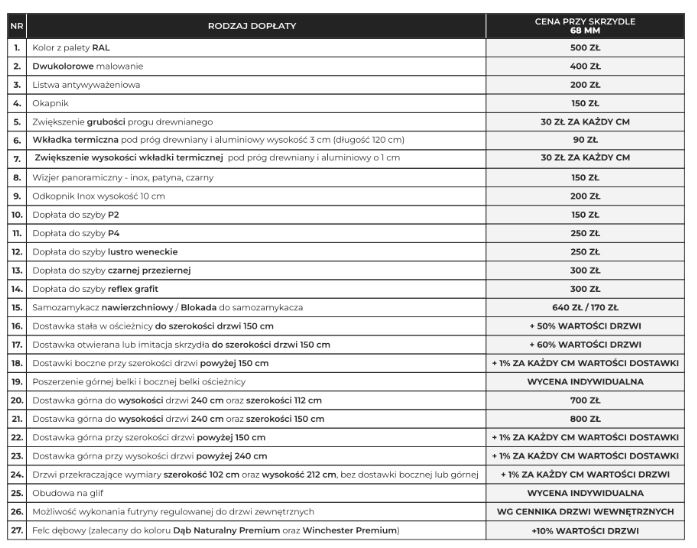 Możliwość wykonania za dopłatą drzwi w wersji:
