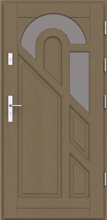 Drewniane drzwi zewnętrzne Agmar Dante z kolekcji Klasycznej to drzwi o tradycyjnym designie połączonym z funkcjonalnością. Drzwi posiadają bardzo dobre parametry izolacji cieplnej. Bogate wyposażenie w standardzie. Drewniana konstrukcja (sosnowa lub dębowa) cieszy się niesłabnącą popularnością i zapewnia nam wytrzymałe drzwi na lata. Możliwość wykonania drzwi w niestandardowych rozmiarach sprawi że z łątwością dopasujemy drzwi do naszych potrzeb. Połączenie drewna z błyszczącym szkłem jest bardzo efektowynm rozwiązaniem dla tych, którzy cenią sobie wysoki poziom estetyki. Postaw na sprawdzone rozwiązania.