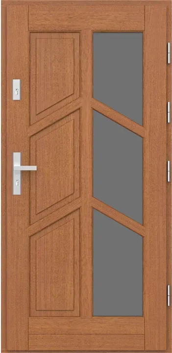 Drewniane drzwi zewnętrzne Agmar Vicky z kolekcji Klasycznej to drzwi o tradycyjnym designie połączonym z funkcjonalnością. Drzwi posiadają bardzo dobre parametry izolacji cieplnej. Bogate wyposażenie w standardzie. Drewniana konstrukcja (sosnowa lub dębowa) cieszy się niesłabnącą popularnością i zapewnia nam wytrzymałe drzwi na lata. Możliwość wykonania drzwi w niestandardowych rozmiarach sprawi że z łatwością dopasujemy drzwi do naszych potrzeb. Połączenie drewna z błyszczącym szkłem jest bardzo efektownym rozwiązaniem dla tych, którzy cenią sobie wysoki poziom estetyki. Postaw na sprawdzone rozwiązania.