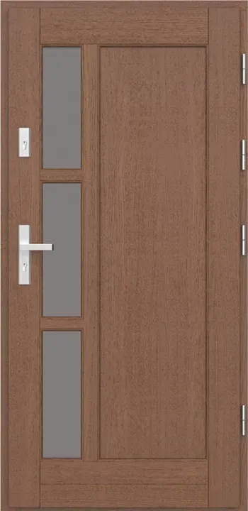 Drewniane drzwi zewnętrzne Agmar Hersa z kolekcji Klasycznej to drzwi o tradycyjnym designie połączonym z funkcjonalnością. Drzwi posiadają bardzo dobre parametry izolacji cieplnej. Bogate wyposażenie w standardzie. Drewniana konstrukcja (sosnowa lub dębowa) cieszy się niesłabnącą popularnością i zapewnia nam wytrzymałe drzwi na lata. Możliwość wykonania drzwi w niestandardowych rozmiarach sprawi że z łatwością dopasujemy drzwi do naszych potrzeb. Połączenie drewna z błyszczącym szkłem jest bardzo efektownym rozwiązaniem dla tych, którzy cenią sobie wysoki poziom estetyki. Postaw na sprawdzone rozwiązania.