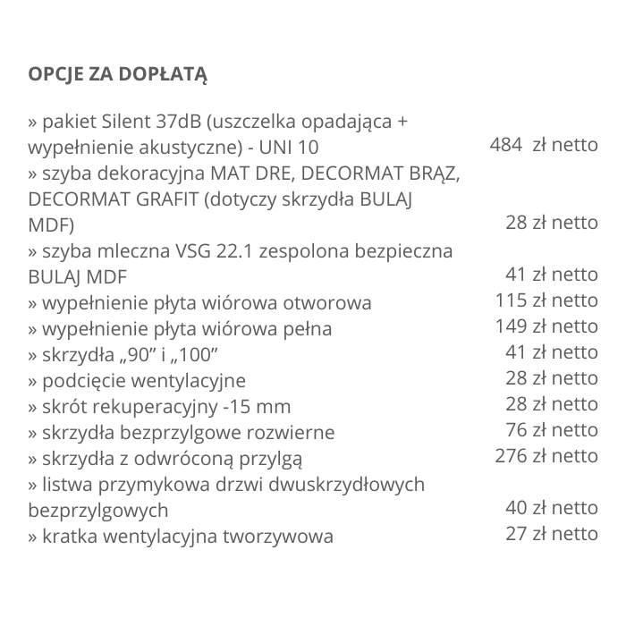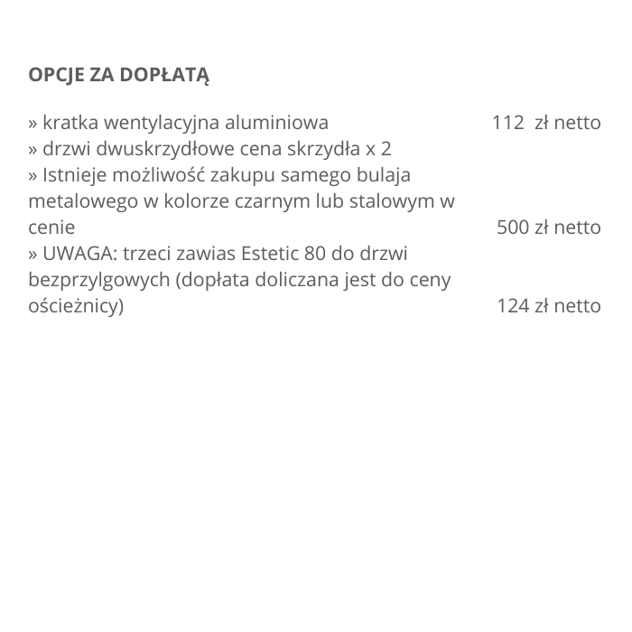 Możliwość wykonania za dopłatą w standardzie: bezprzylgowe, rewersyjne.