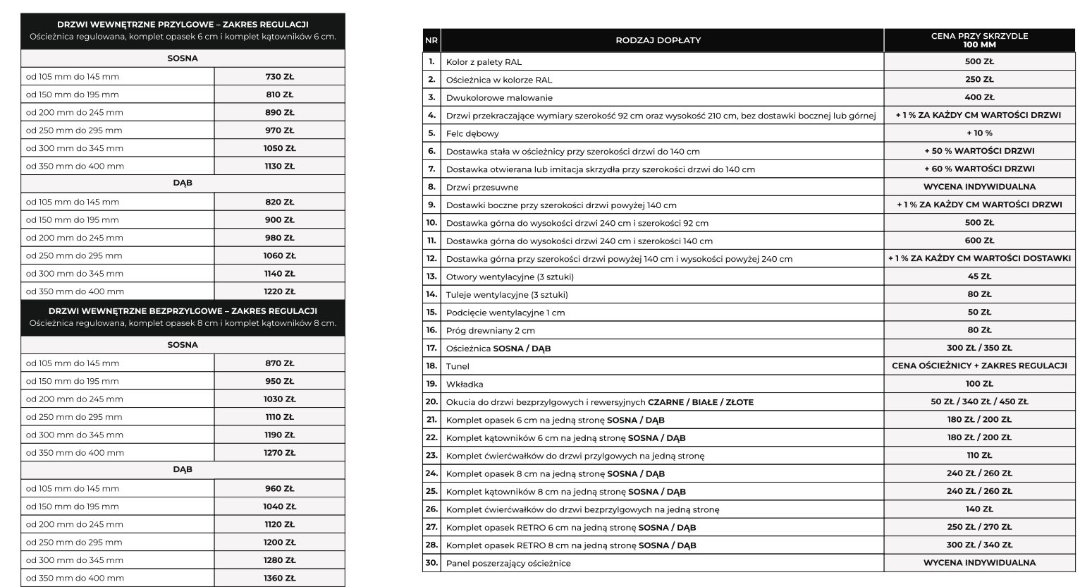 Możliwość wykonania za dopłatą w standardzie: bezprzylgowe