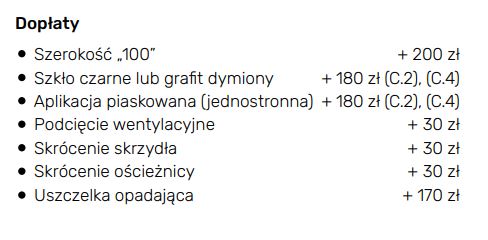 Możliwość wykonania za dopłatą w standardzie: bezprzylgowe, rewersyjne.