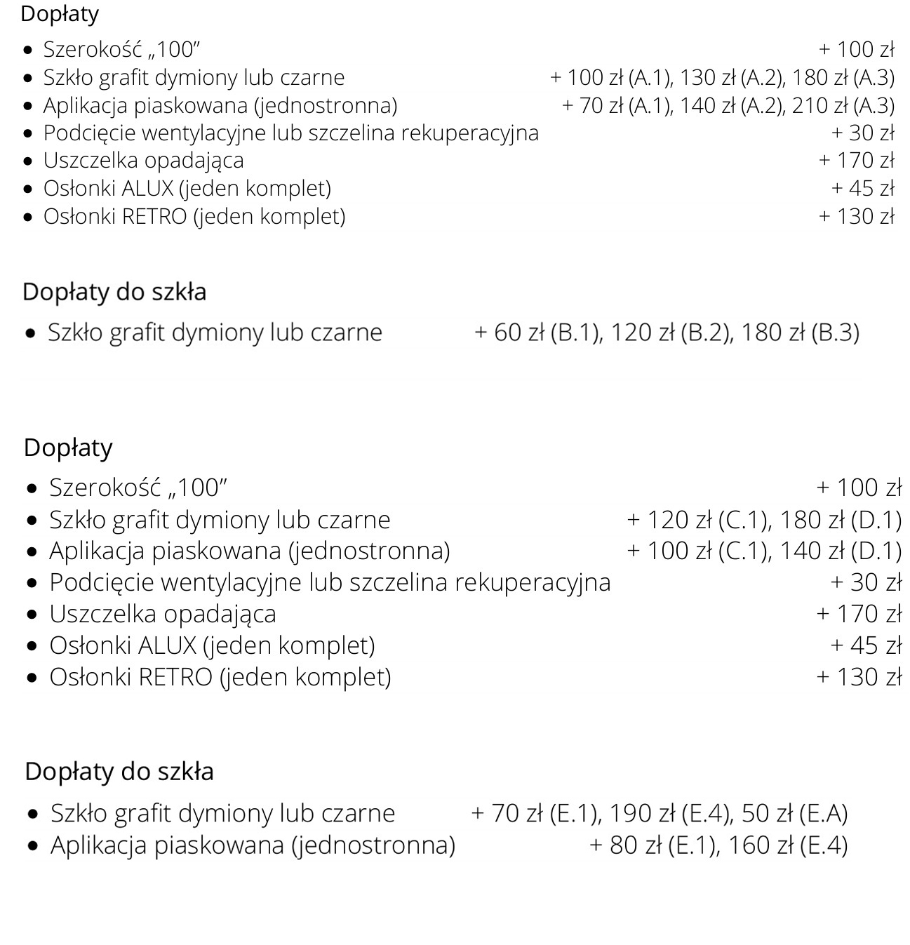 Możliwość wykonania za dopłatą w standardzie: bezprzylgowe, rewersyjne.