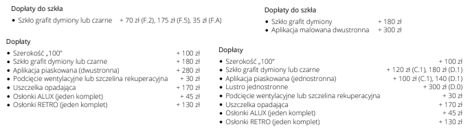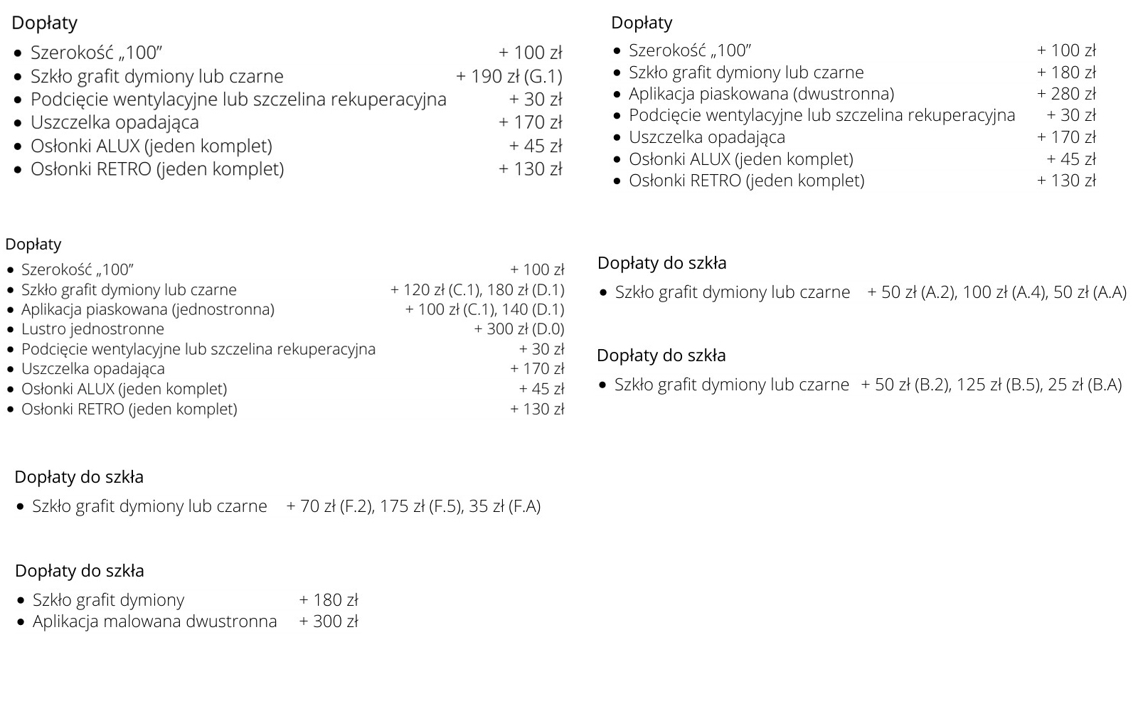 Możliwość wykonania za dopłatą w standardzie: bezprzylgowe, rewersyjne.