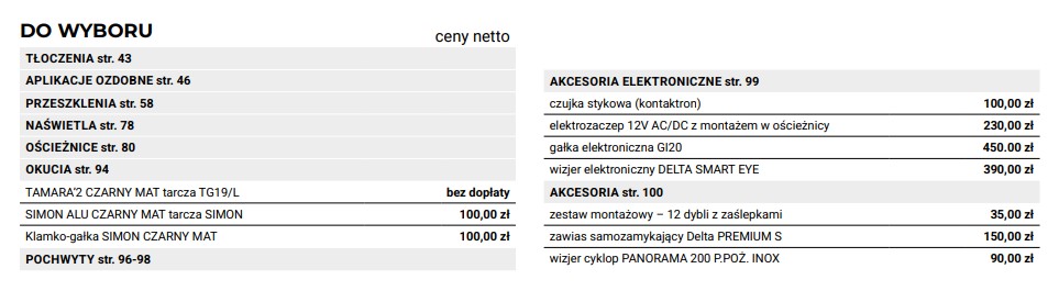 Cena dotyczy skrzydła drzwiowego z ościeżnicą i kompletem okuć.