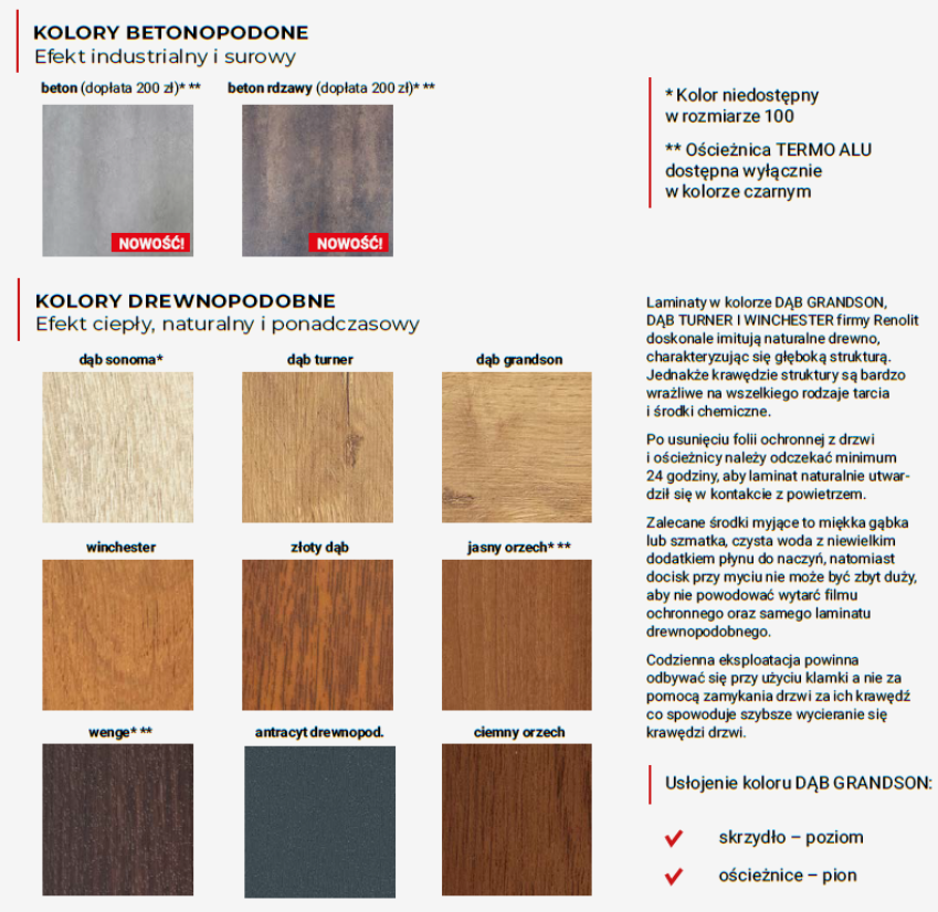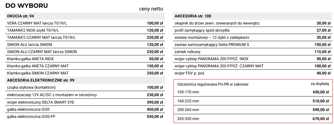 * Cena dotyczy skrzydła drzwiowego (VAT 8%) z klamką, ościeżnicą i kompletem okuć