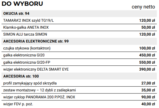 Cena dotyczy skrzydła drzwiowego z ościeżnicą i kompletem okuć.