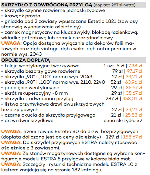 Możliwość wykonania za dopłatą w standardzie: bezprzylgowe, rewersyjne.