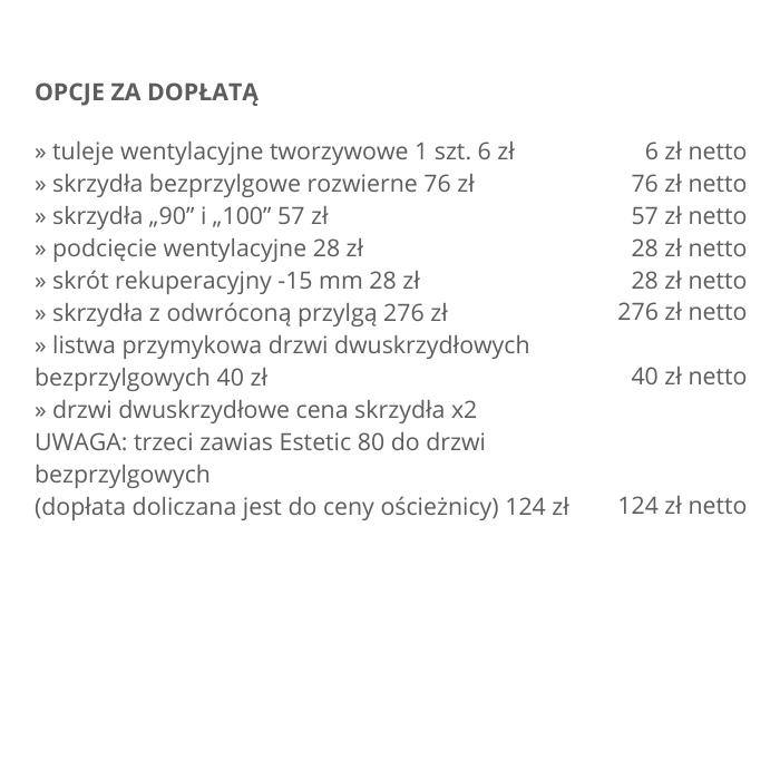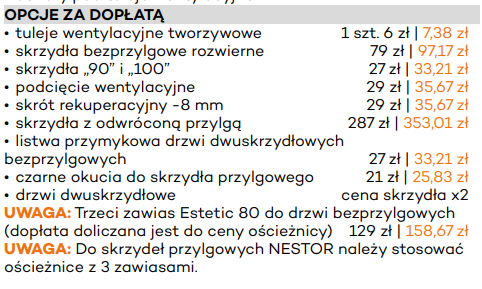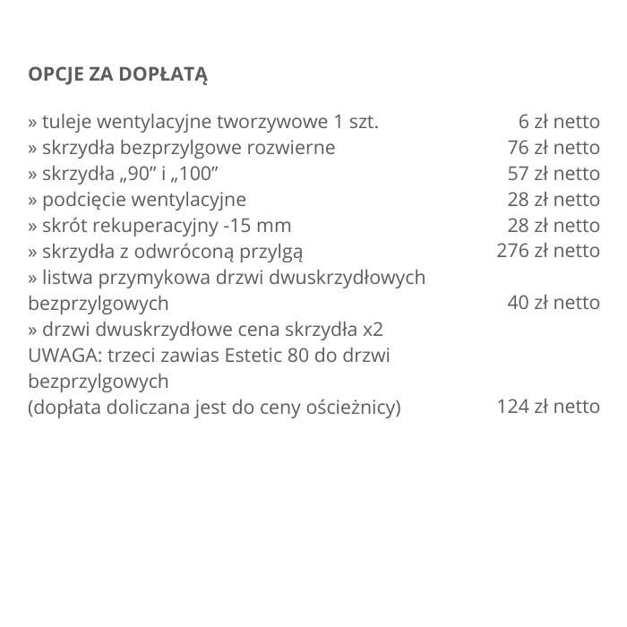 Możliwość wykonania za dopłatą w standardzie: rewersyjne, przesuwne.