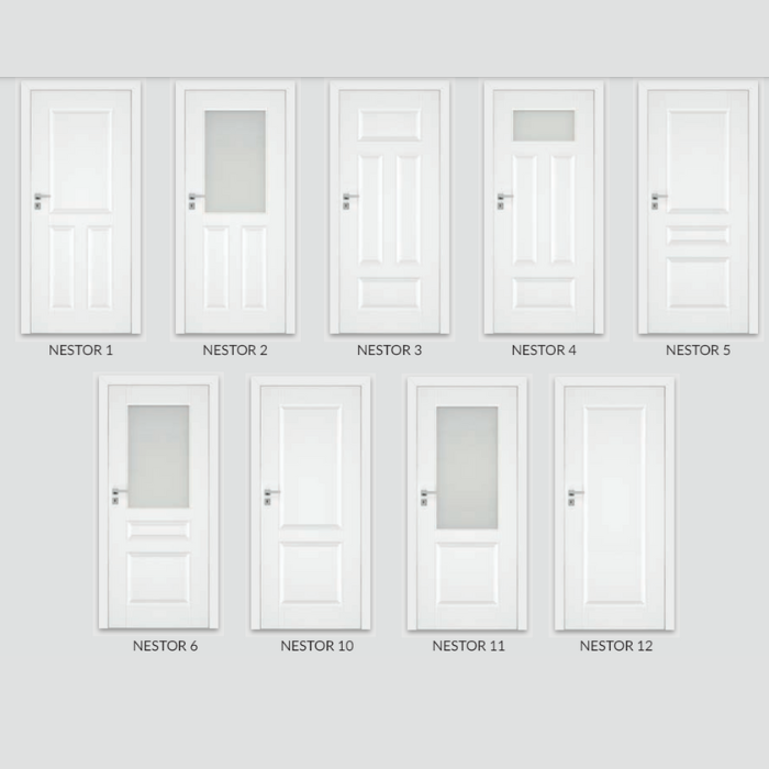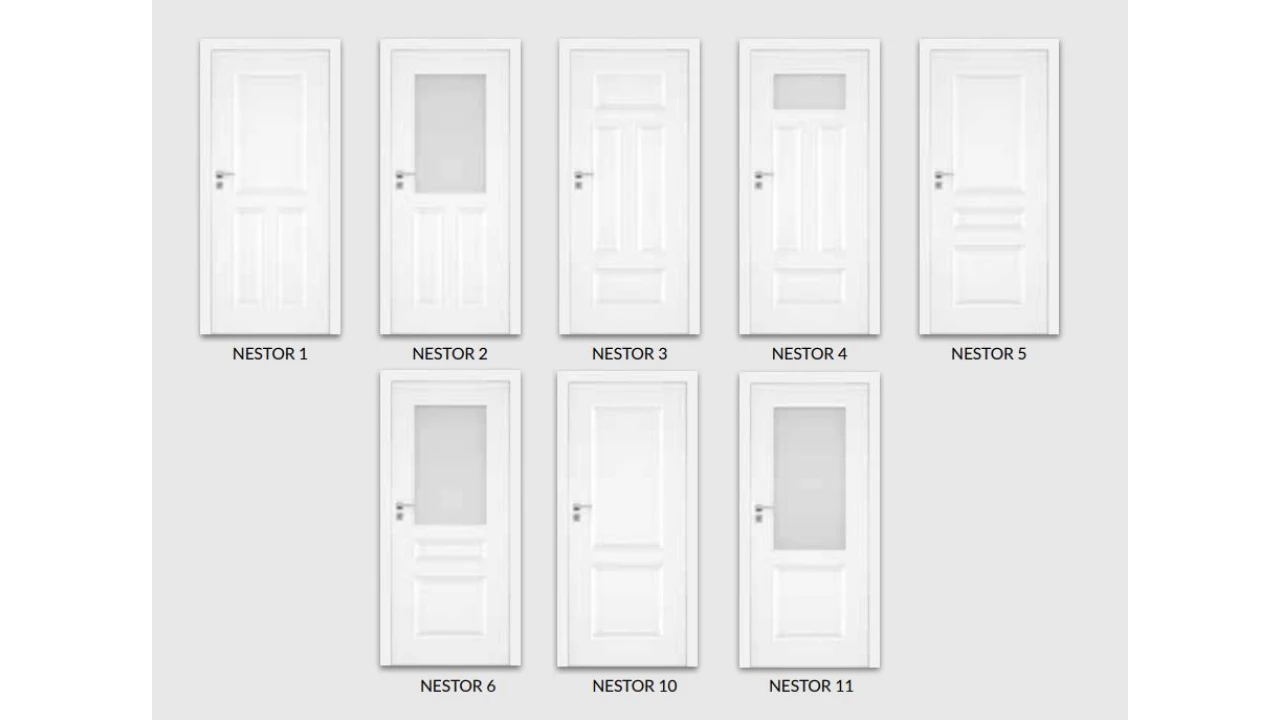Skrzydła ramowe wykonane są w całości z płyty MDF. Grubość ramiaków pionowych wynosi 40 mm, a szerokość wynosi 160 mm, co zapewnia trwałą konstrukcję skrzydła drzwiowego. W drzwiach zastosowano szybę MAT DRE o grubości 4 mm oraz płyciny płaskie HDF. Kolorystyka i wzory skrzydła drzwiowego dostępne w galerii zdjęć.