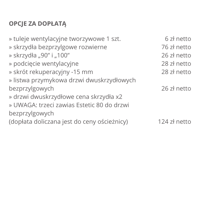 Możliwość wykonania za dopłatą w standardzie: rewersyjne, przesuwne.