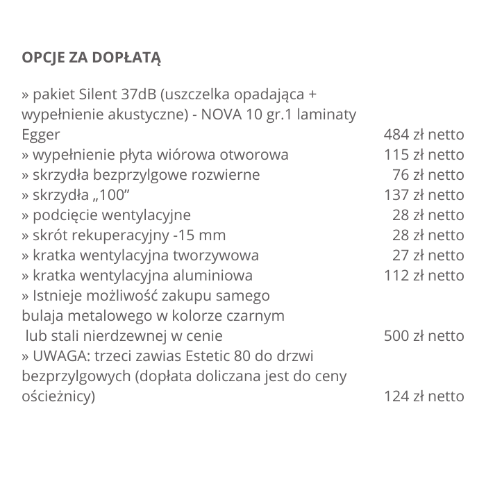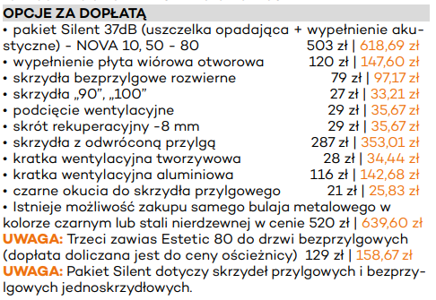 Możliwość wykonania za dopłatą w standardzie: bezprzylgowe.