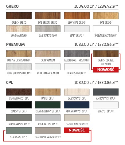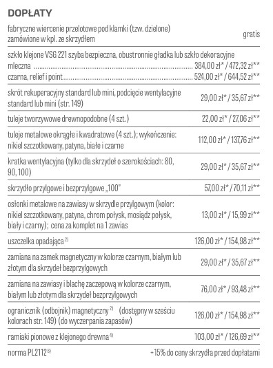 Możliwość wykonania za dopłatą w standardzie: bezprzylgowe, rewersyjne.