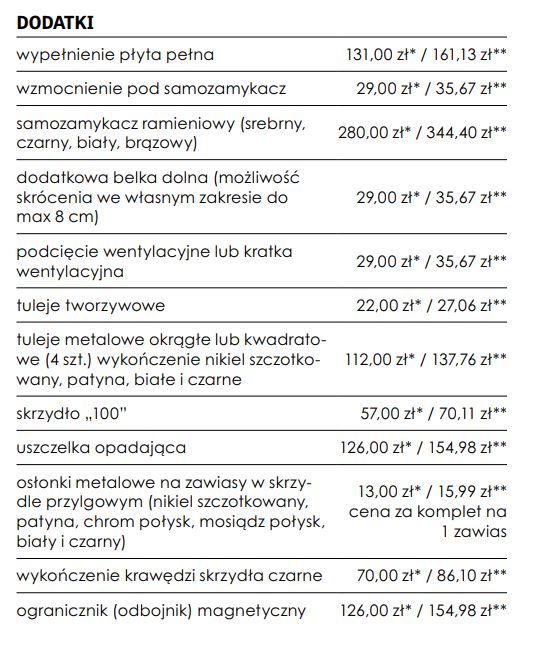 W szybkiej realizacji drzwi dostępne w wersjach:
