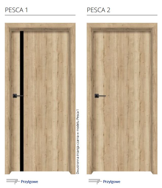 Pesca 1: norma polska, przylgowe, 3 zawiasy, wypełnienie „plaster miodu”, rozmiar od 70 – 90. (rozmiary 60-80 dla wersji z zamkiem WC) – 481 zł brutto