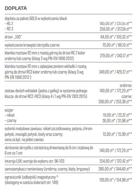 Możliwe dodatkowe płatności