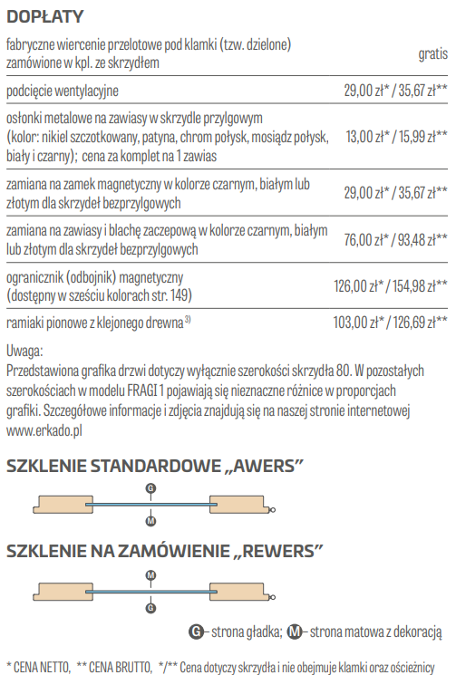 Możliwość wykonania za dopłatą w standardzie: bezprzylgowe, rewersyjne.
