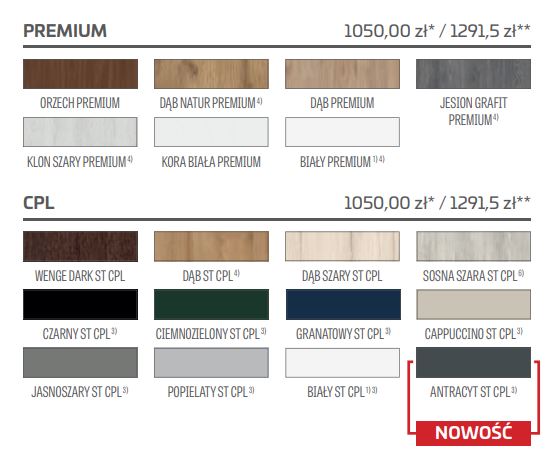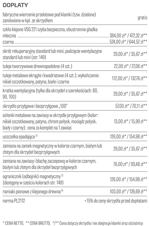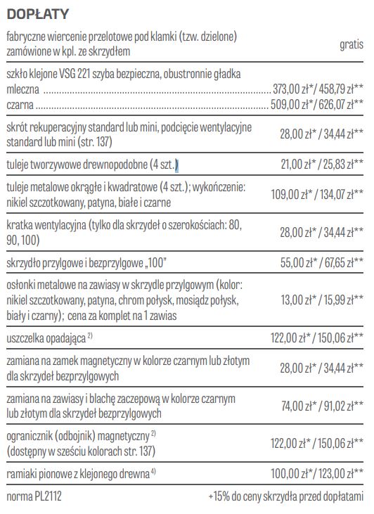 Możliwość wykonania za dopłatą w standardzie: bezprzylgowe, rewersyjne.