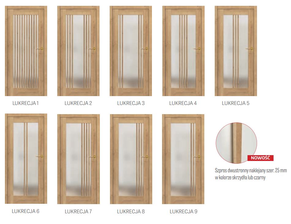 Drzwi Lukrecja przylgowe lub bezprzylgowe producenta Erkado to doskonałe połączenie nowoczesnego wyglądu z funkcjonalnością i niską ceną. Ramiaki pionowe i poziome z płyty MDF pokryte okleiną PREMIUM. Kolorystyka dostępna w galerii zdjęć.