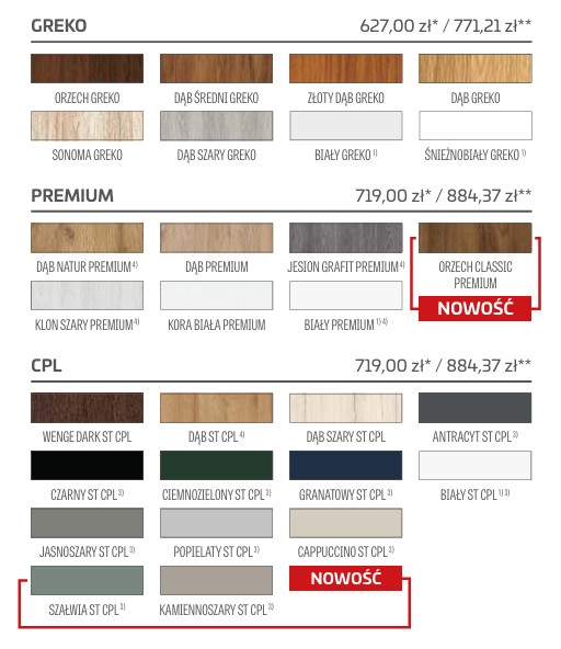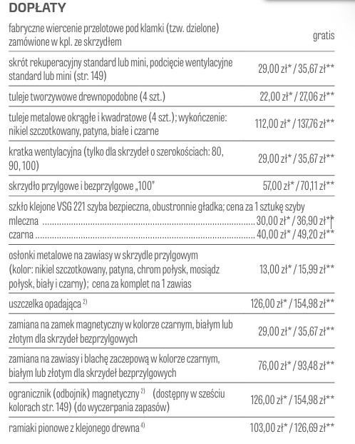 Możliwość wykonania drzwi za dopłatą w standardzie: bezprzylgowe.