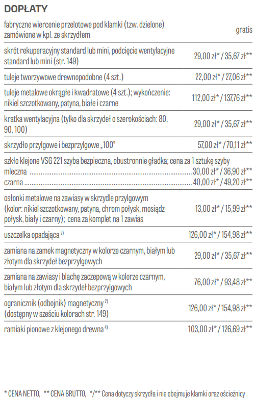 Możliwe dodatkowe płatności