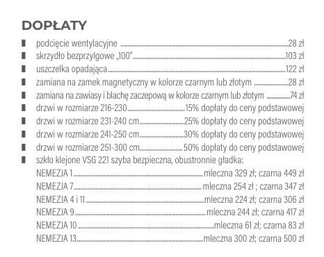 Możliwość wykonania za dopłatą w standardzie: bezprzylgowe, rewersyjne.