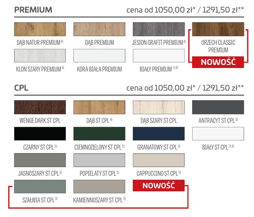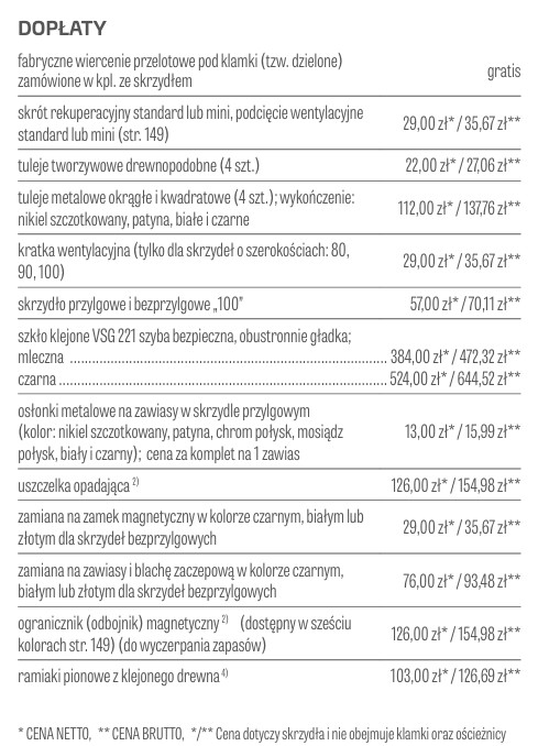Możliwość wykonania za dopłatą w standardzie: bezprzylgowe, rewersyjne.