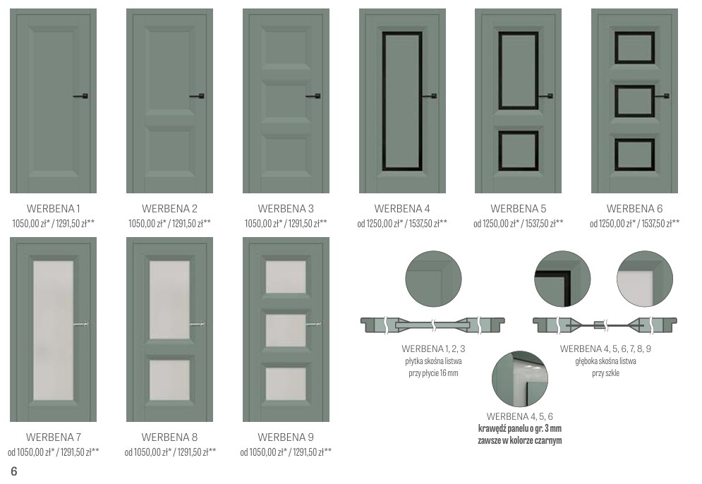 Drzwi Werbena 2 producenta Erkado to doskonałe połączenie nowoczesnego wyglądu z funkcjonalnością i niską ceną. Kontrukcja ramiakowa sprawia że produkt jest bardziej odporny na odkształcenia. Dzięki szerokiej ofercie dostępnych oklein z łatwością dobierzemy kolorystyke pasującą do naszych wnętrz. Powłoka antifinger sprawia że drzwi są bardziej odporne na zabrudzenia oraz ślady palców. Kolorystyka oraz modele dostępne w galerii zdjęć produktu.